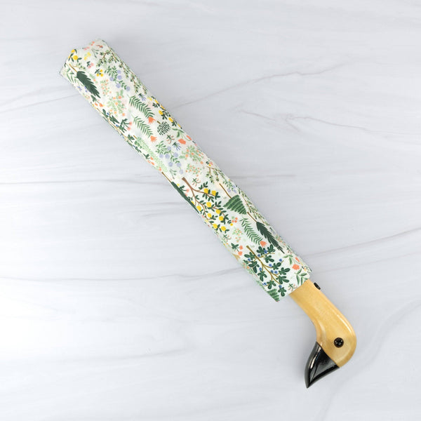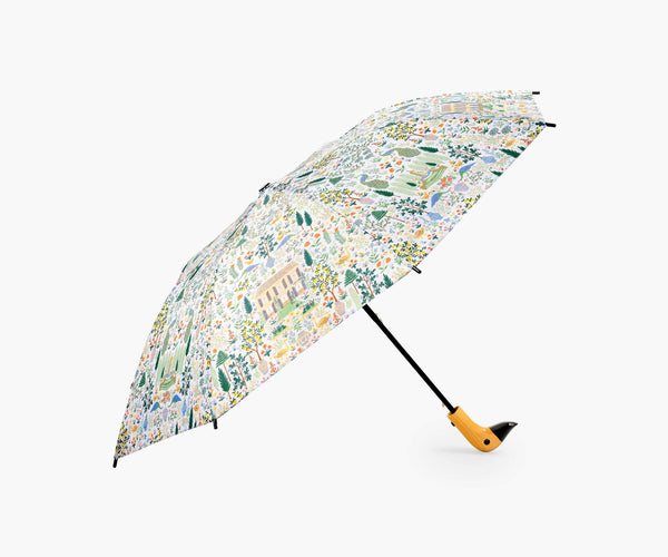 Transport yourself to the pastoral grounds of an 18th-century farmhouse in Gascony, France with our new Camont umbrella. The umbrella has a patterned sleeve, an auto open function, and a classic wooden duck handle for an extra dose of charm.