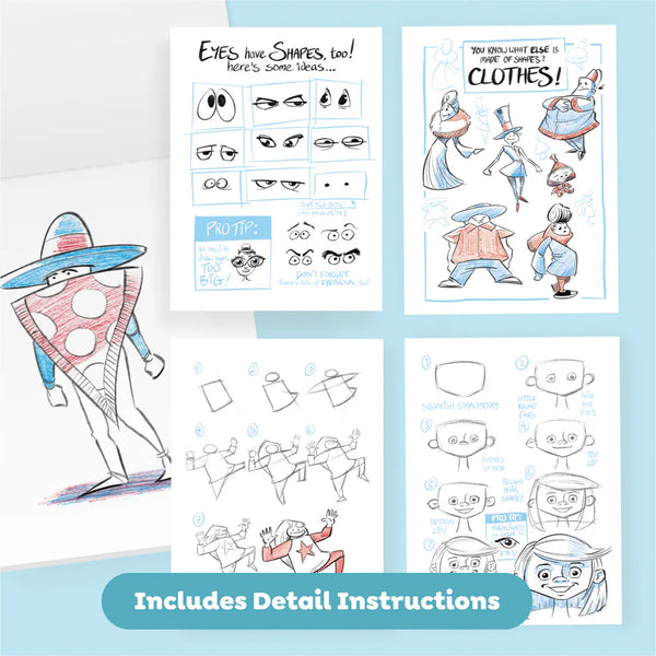 The detailed Drawing Guide will lead your child through the steps of drawing people, covering body shapes, poses, positions, eye shapes, mastering those tricky hands, and much more!