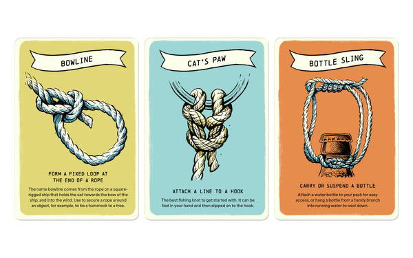 A practical knot-tying kit with 30 easy-to-learn knot instruction cards.