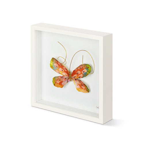 This beautifully imaginative collection of artisan butterfly reproductions, including the Orange Multi Butterfly Wall Art - 10"sq, infuses Elisabeth Hays' love of natural elements, mixed media, translucent materials and abstract art.