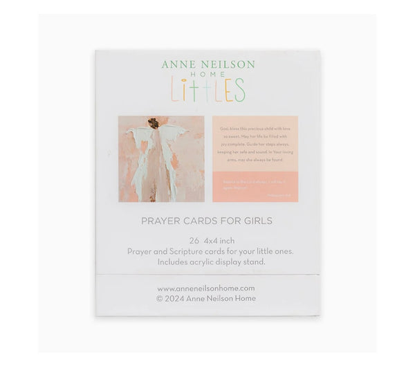 We are so excited to introduce ANH Littles and our Prayer Cards for Girls, which feature 26 different prayers with accompanying scriptures. The front of the card displays Anne Neilson’s new Gracious One angel, with a prayer and scripture on the back of each card. Our hope is that these prayers will bring a sense of comfort and protection as you pray over your child.