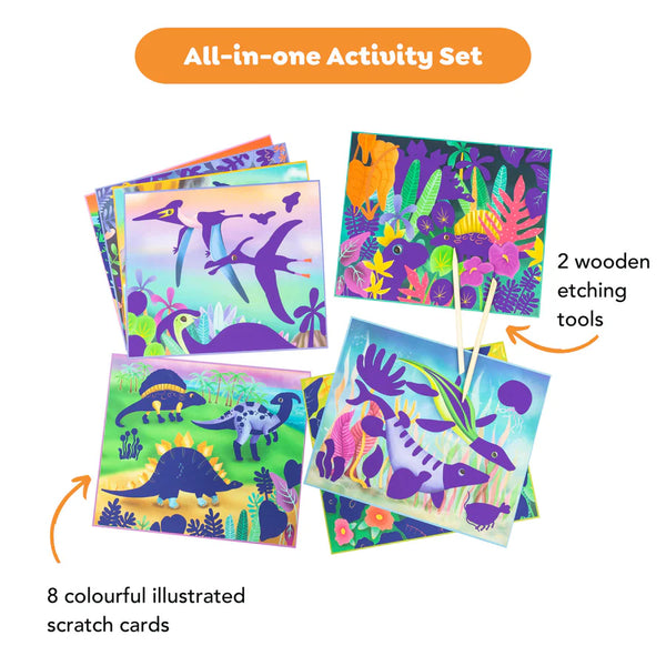 - Scratch Art set featuring beautifully illustrated dinosaurs