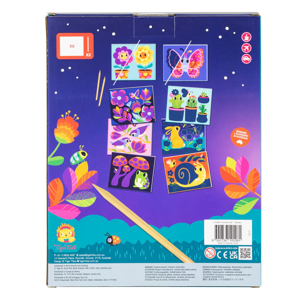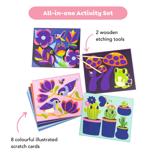 - Scratch Art set featuring beautifully illustrated garden designs