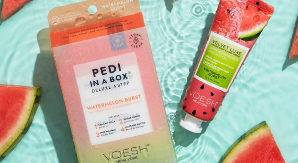 Say hello to summer toes! Our Watermelon Burst is now a new scent in our Pedi in a Box 4 Step and included in our Duo. Let the sweet, refreshing watermelon scent boost your mood in just 4 simple steps. What’s great about this watermelon pedicure is it cleanses, exfoliates, and hydrates your feet. Here’s a breakdown of the 4 steps.