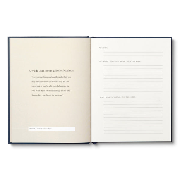 A thoughtful alternative to a bucket list, this self-care journal is filled with prompts and exercises to remind you that dreams can come true every day, not just once in a lifetime. Because when you slow down and listen to the quiet hopes of your heart, wish-making becomes more than just dreaming. It becomes a way to invite more clarity, joy, and possibility into every day.